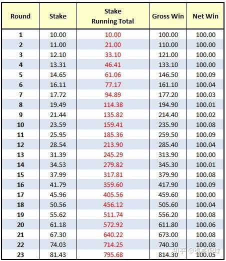 上表很清楚地显示,尽管赔率很高,但如果几支队伍没有足够快地达到预期的结果,那么每轮增加赌注的累积就会变得相当昂贵。